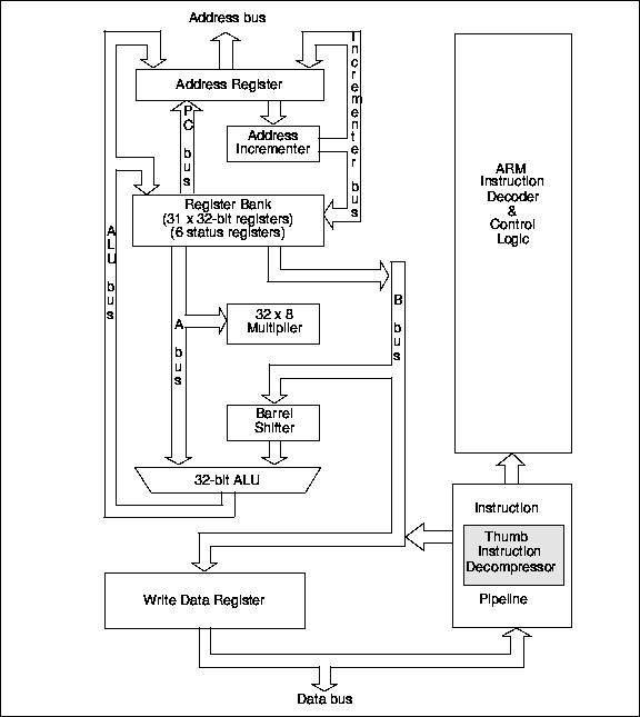 Рисунок 2: Ядро ARM7TDMI и расположение декомпрессора команд Thumb