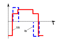Рис. 3. Диаграмма напряжения и тока управления Схематичный разрез структуры IGBT показан на рис. 4,а. Биполярный транзистор образован слоями p+ (эмиттер), n (база), p (коллектор); полевой - слоями n (исток), n+ (сток) и металлической пластиной (затвор). Слои p+ и p имеют внешние выводы, включаемые в силовую цепь. Затвор имеет вывод, включаемый в цепь управления. На рис. 4,б изображена структура IGBT IV поколения, выполненого по технологии "утопленного" канала (trench-gate technology), позволяющей исключить сопротивление между p-базами и уменьшить размеры прибора в несколько раз.