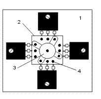 Рис. 5. Типовая конструкция IGBT-модуля: 1 - кристалл; 2 - слой керамики; 3 - спайка; 4 - нижнее тепловыводящее основание Ток управления IGBT мал, поэтому цепь управления - драйвер конструктивно компактна. Наиболее целесообразно располагать цепи драйвера в непосредственной близости от силового ключа. В модулях IGBT драйверы непосредственно включены в их структуру. "Интеллектуальные" транзисторные модули (ИТМ), выполненные на IGBT, также содержат " интеллектуальные" устройства защиты от токов короткого замыкания, системы диагностирования, обеспечивающие защиту от исчезновения управляющего сигнала, одновременной проводимости в противоположных плечах силовой схемы, исчезновения напряжения источника питания и других аварийных явлений. В структуре ИТМ на IGBT предусматривается в ряде случаев система управления с широтно-импульсной модуляцией (ШИМ) и однокристальная ЭВМ. Во многих модулях имеется схема активного фильтра для коррекции коэффициента мощности и уменьшения содержания высших гармонических в питающей сети. IGBT-модуль по внутренней электрической схеме может представлять собой единичный IGBT, двойной модуль (half-bridge), где два IGBT соединены последовательно (полумост), прерыватель (chopper), в котором единичный IGBT последовательно соединён с диодом, однофазный или трёхфазный мост. Во всех случаях, кроме прерывателя, модуль содержит параллельно каждому IGBT встроенный обратный диод. Наиболее распространённые схемы соединений IGBT- модулей приведены на рис. 6.