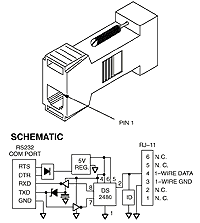 Dallas Semiconductor поставляет готовый адаптер для последовательного порта (25 у.е. в розницу). Внешний вид дан ниже: